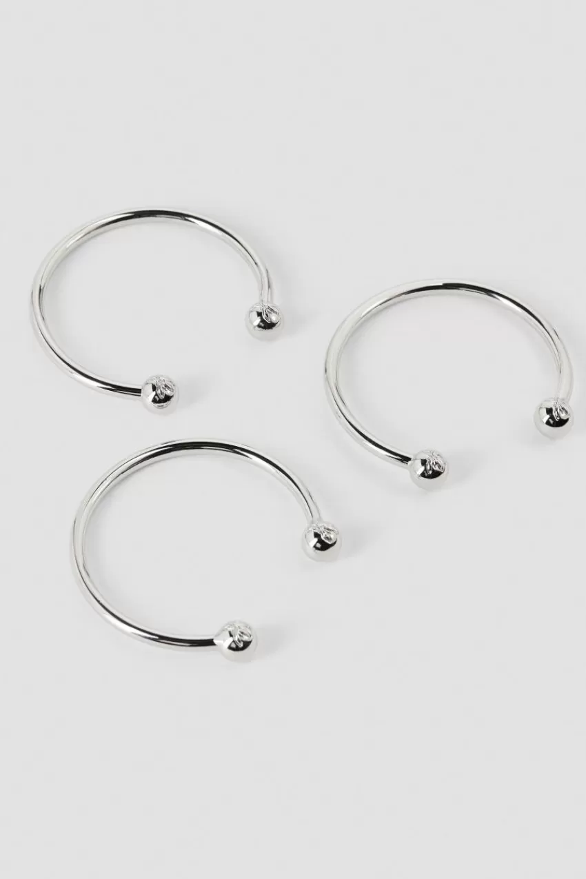 Coraggio, libera la tua anima rock. Questo kit di tre bracciali in nikel super lucido dà un twist irriverente alla tua mise grazie ai dettagli piercing con applicazioni micro Fly.