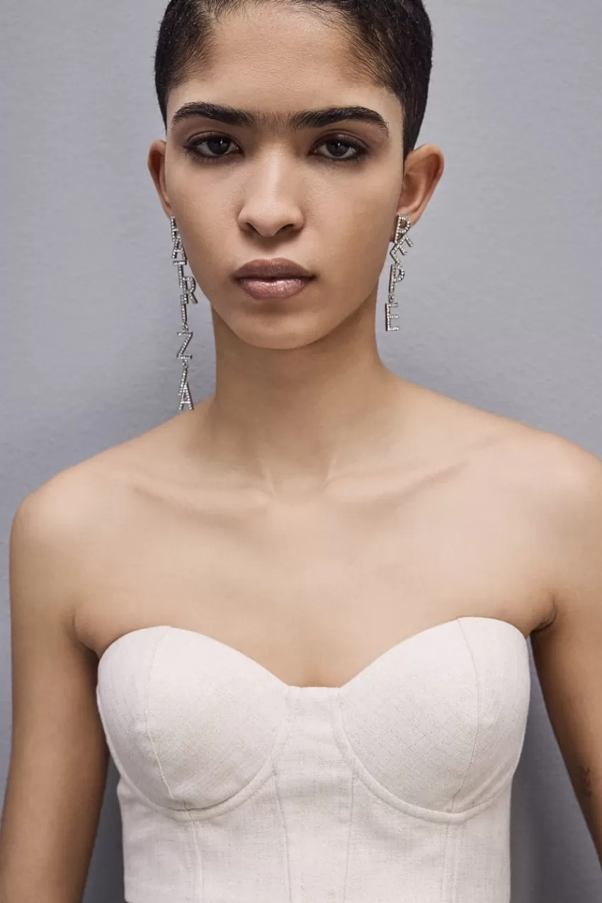 Una cascata di cristalli e lettere in libertà: i nuovi orecchini giocano con il logo Patrizia Pepe e un’asimmetria dal …