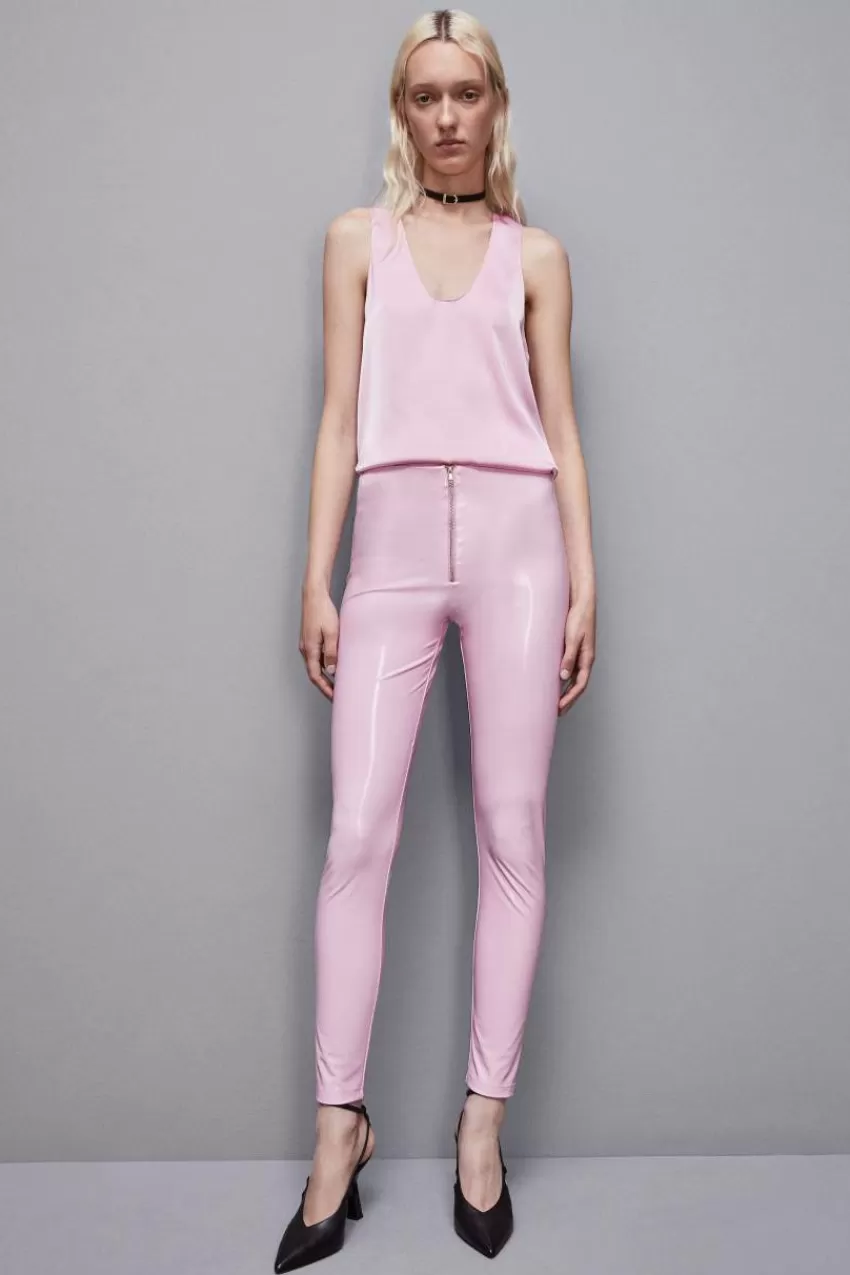 I leggings a vita alta in tessuto spalmato stretch sono un capo vibrante e audace firmato Patrizia Pepe. Indossali per dare un twist di energia e grinta alla tua giornata.
