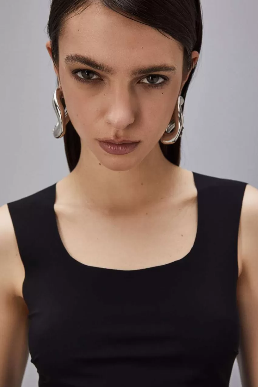 Realizzato in morbido jersey tecnico stretch, con la sua vestibilità slim il top canotta tinta unita con scollo a U firmato Patrizia Pepe è un capo versatile da indossare nei tuoi look quotidiani.