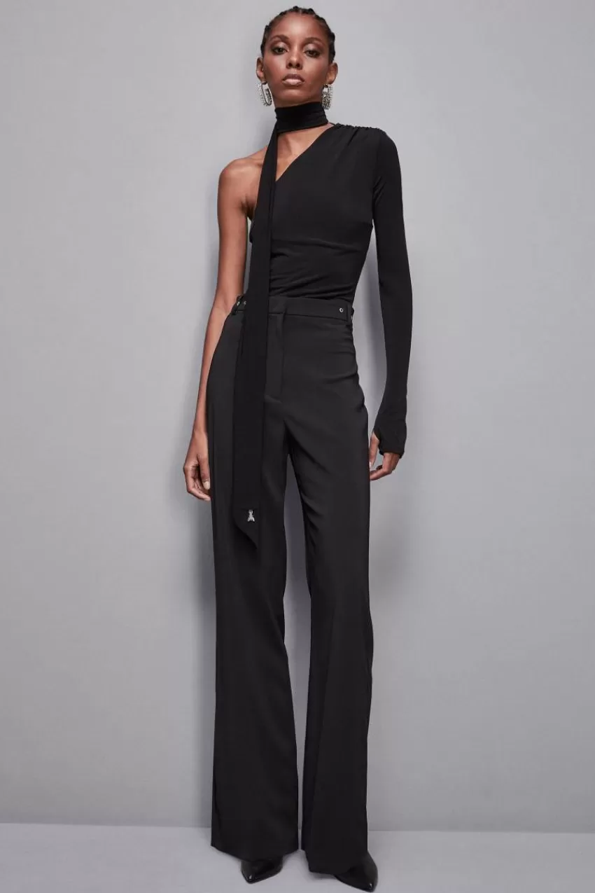 Dona un twist seducente al tuo look con il top monospalla in jersey stretch. Il capo presenta vestibilità slim e apertura sotto il braccio. Si distingue per la fusciacca da annodare al collo.