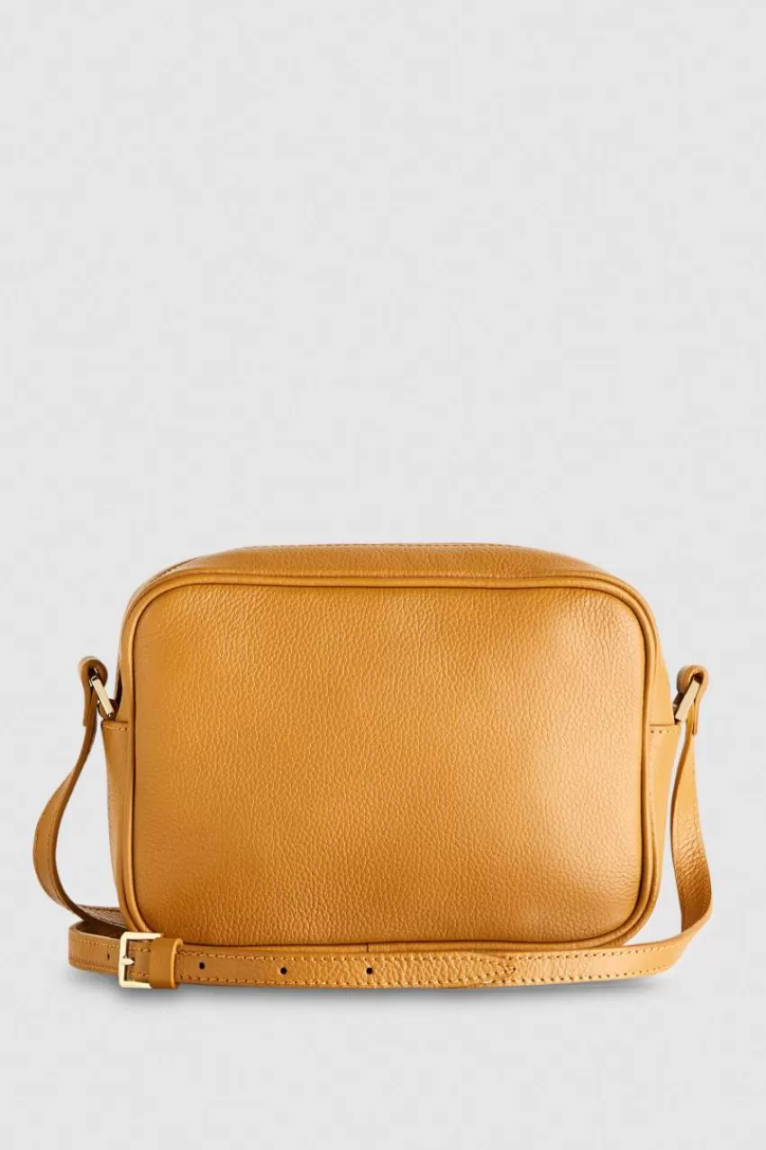 Colore di tendenza e stile minimal per la camera bag in pelle di vitello con lavorazione martellata. Dotata di una pratica tasca interna, è ideale per portare con te l’essenziale senza rinunciare allo stile.