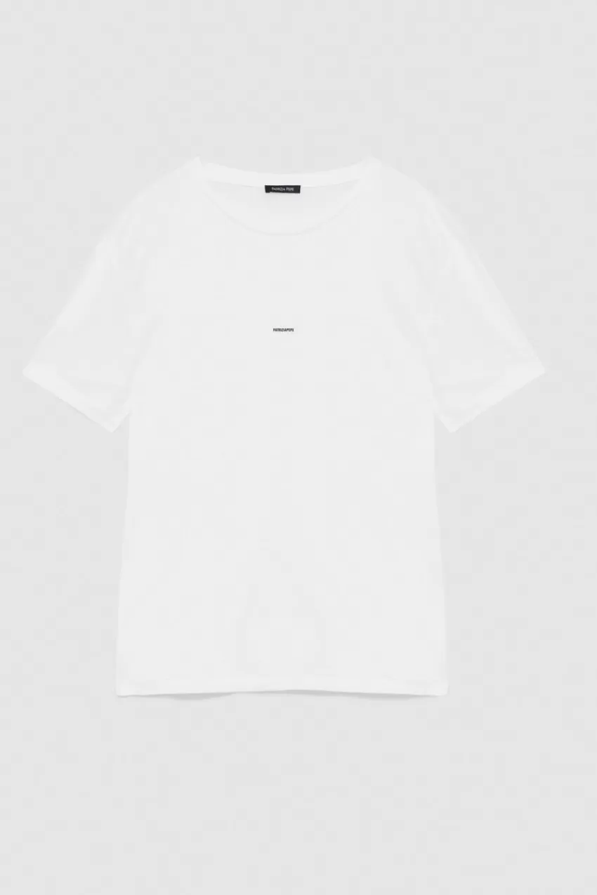 T-shirt con scollo rotondo in morbido jersey di cotone pima caratterizzata dal micrologo Patrizia Pepe stampato sul davanti. Un capo basic firmato che non può mancare nel guardaroba.